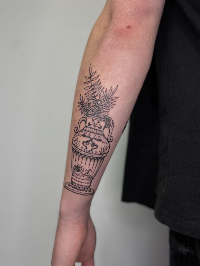 In unserem Tattoo Studio Bremen entstehen individuelle Kunstwerke mit Liebe zum Detail. Dieses florale Tattoo überzeugt durch feine Linien und sanfte Schattierungen. Egal ob große Motive oder kleine Tattoos mit persönlicher Bedeutung – wir gestalten dein Design einzigartig und professionell. Wenn du ein hochwertiges Tattoo suchst, das perfekt zu dir passt, vereinbare jetzt einen Termin in unserem Tattoo Studio.
